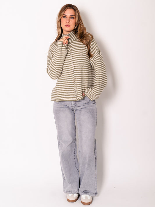 AusverkauftZip Up Streifen Cardigan - Grün/Creme