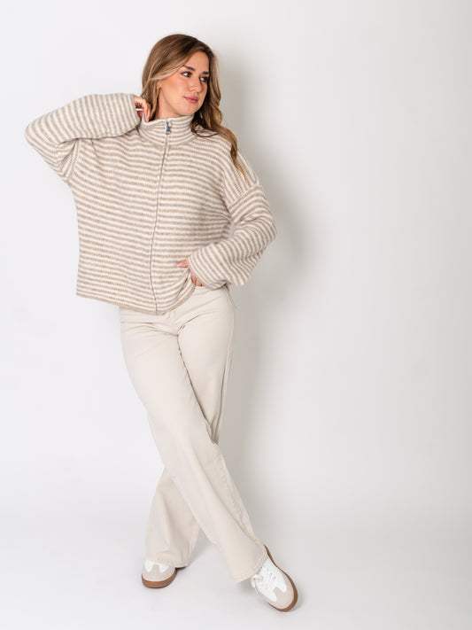 AusverkauftZip Up Streifen Cardigan - Taupe/Beige