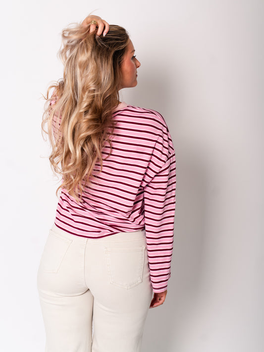 AusverkauftStreifen Longsleeve - Rosa/Rot
