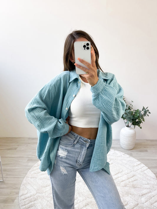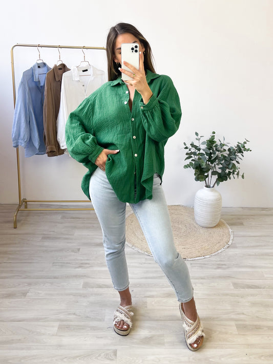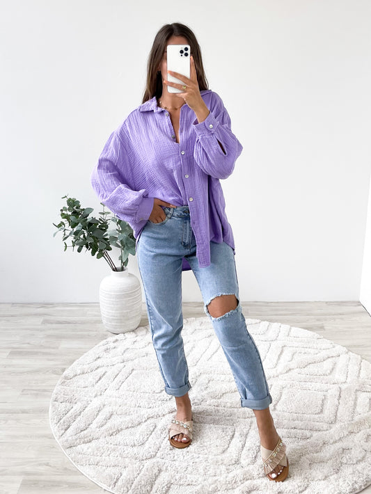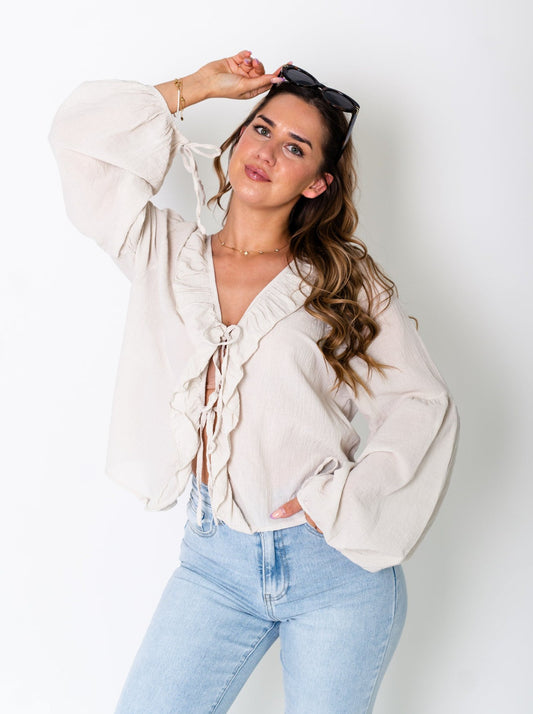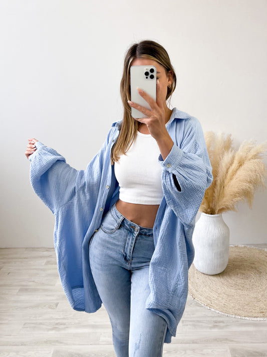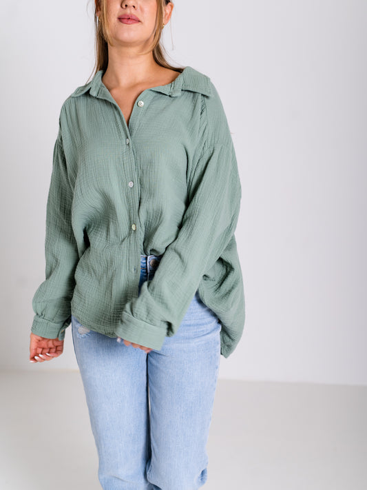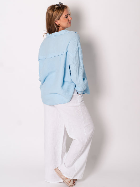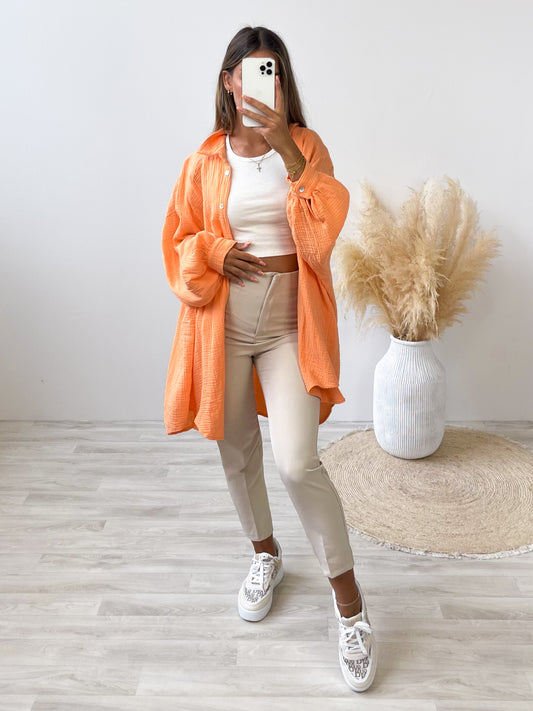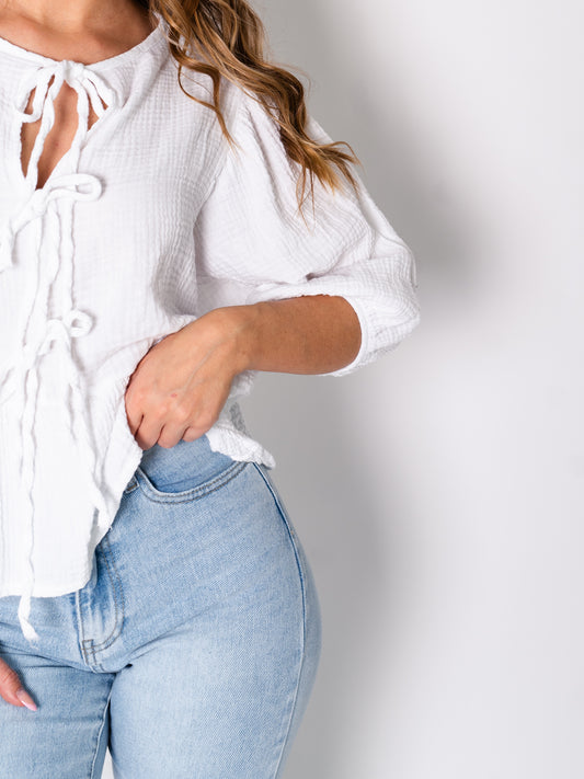 Midi Streifen Musselin Bluse - Weiß/Gelb