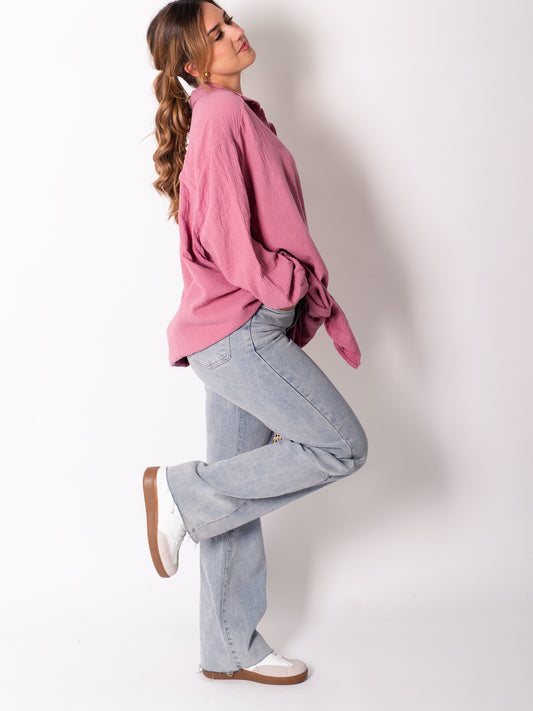 Waffle Oversize Bluse - Altrosa