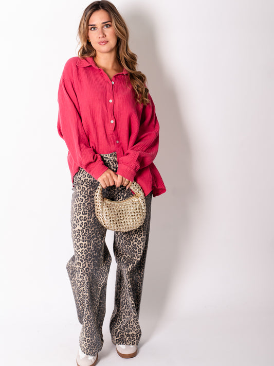 Waffle Oversize Bluse - Himbeere