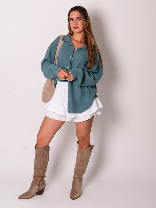 Midi Waffle Bluse - Petrol