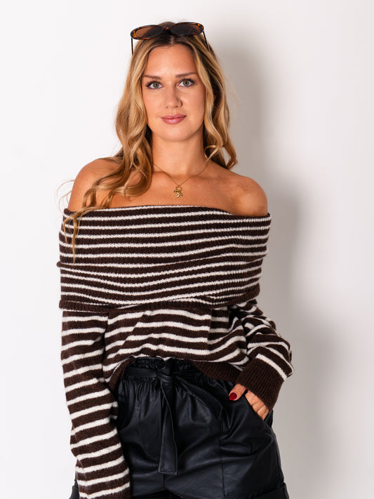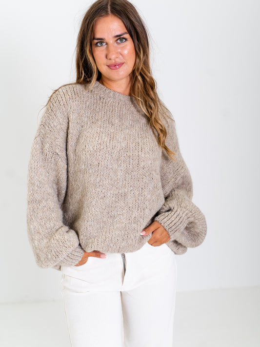 AusverkauftMara Strick Pullover - Creme/Taupe