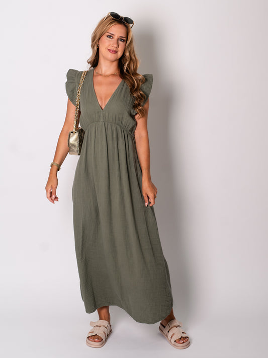 Leonora Musselin Kleid - Khaki