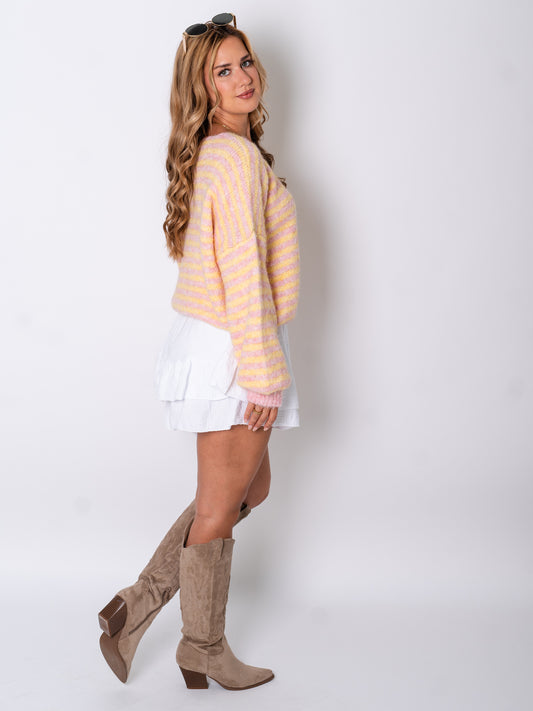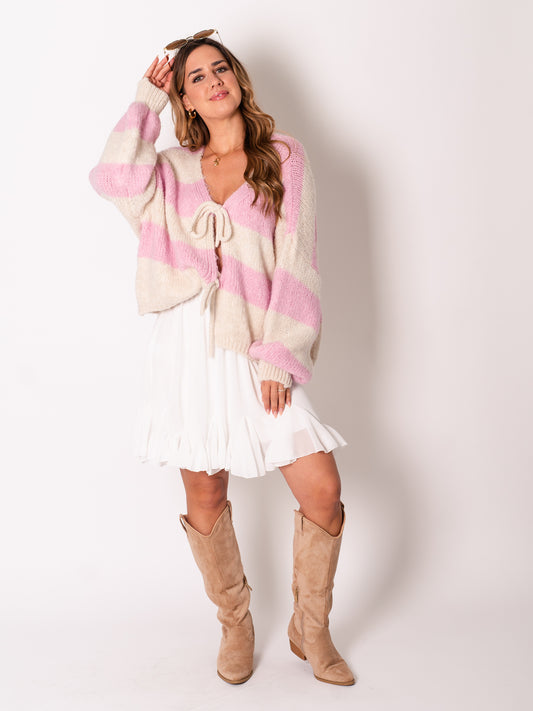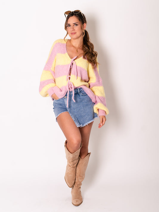 Helena Schleifen Strickjacke - Gelb/Rosa